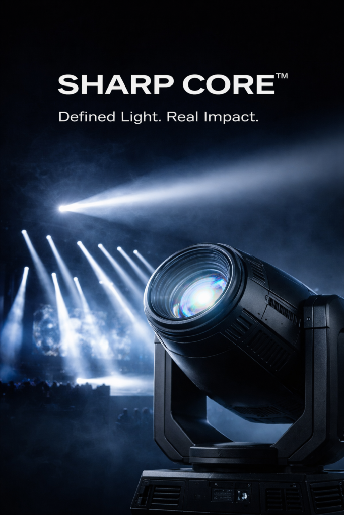 Sharp Core™ lighting is optimized for live shows, touring systems, DJs, houses of worship, and professional event production, where reliability and visual precision are critical.